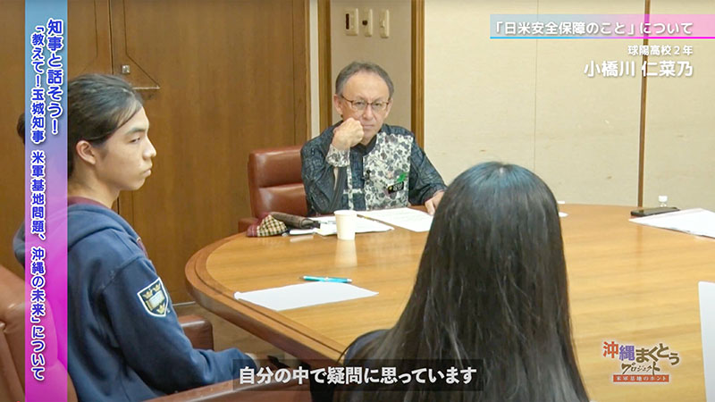 沖縄の未来を担う若い世代と、玉城デニー知事が沖縄県と米軍基地のあり方について対話をしました。 学生たちがインタビューを通じて得た学びや気づきなど、感じていただきたいと思います。